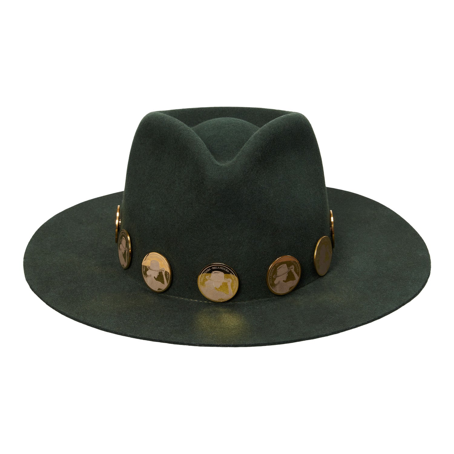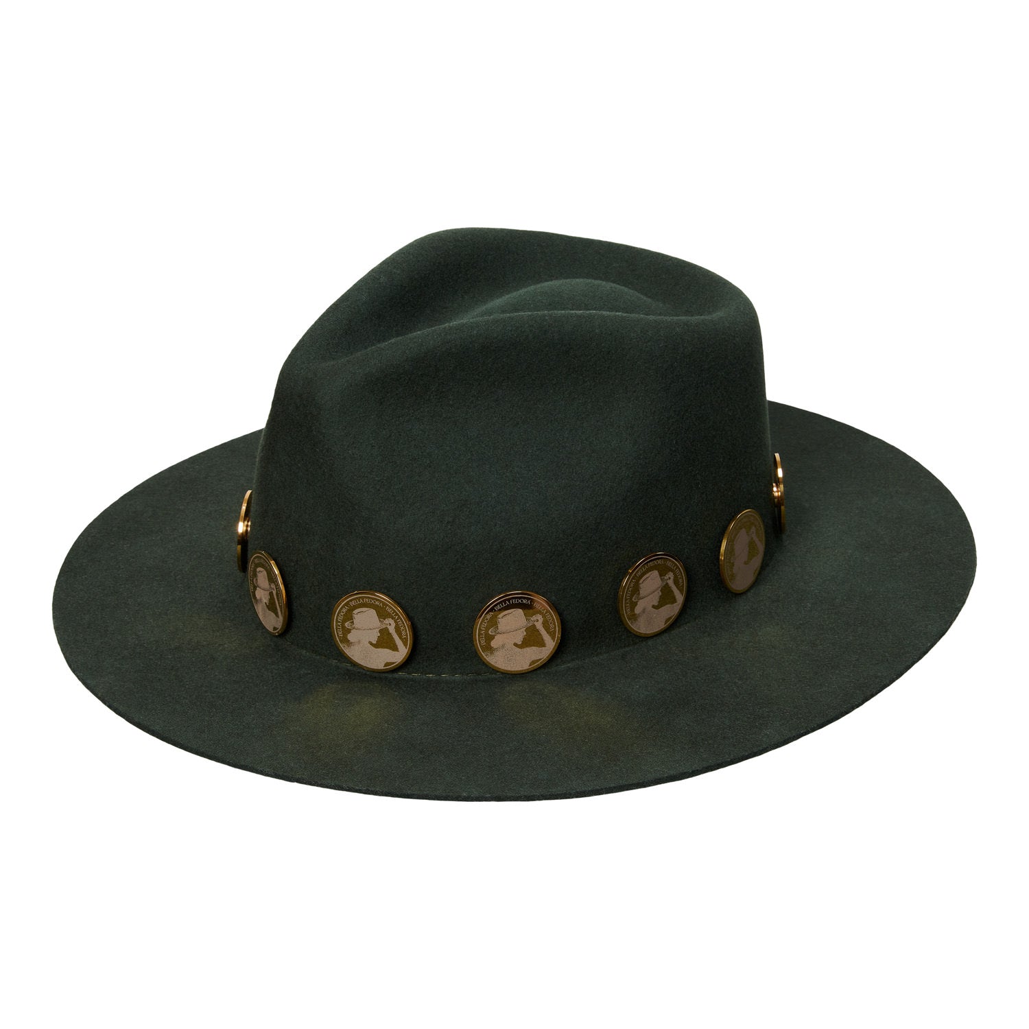 Pimp ook jouw outfits met de unieke Gold Coin Basil fedora hoed gemaakt van donkergroen wolvilt en versiert met gouden gegraveerde Bella Fedora munten. Deze munten zijn ons eigen ontwerp en worden door het wolvilt heen vastgemaakt op de hoed. Kwaliteit staat bij ons voorop. Iedere hoed wordt zorgvuldig met de hand versiert.
