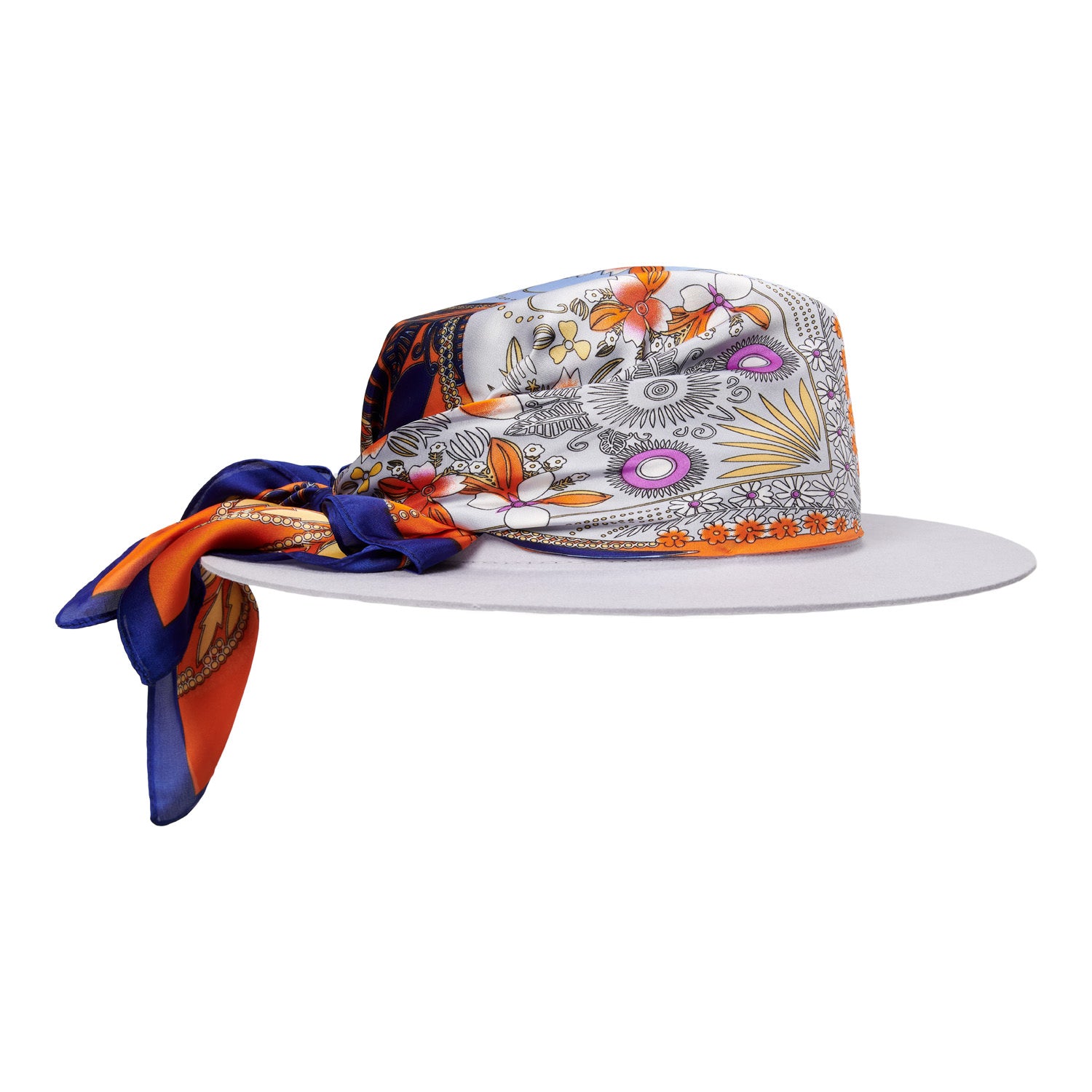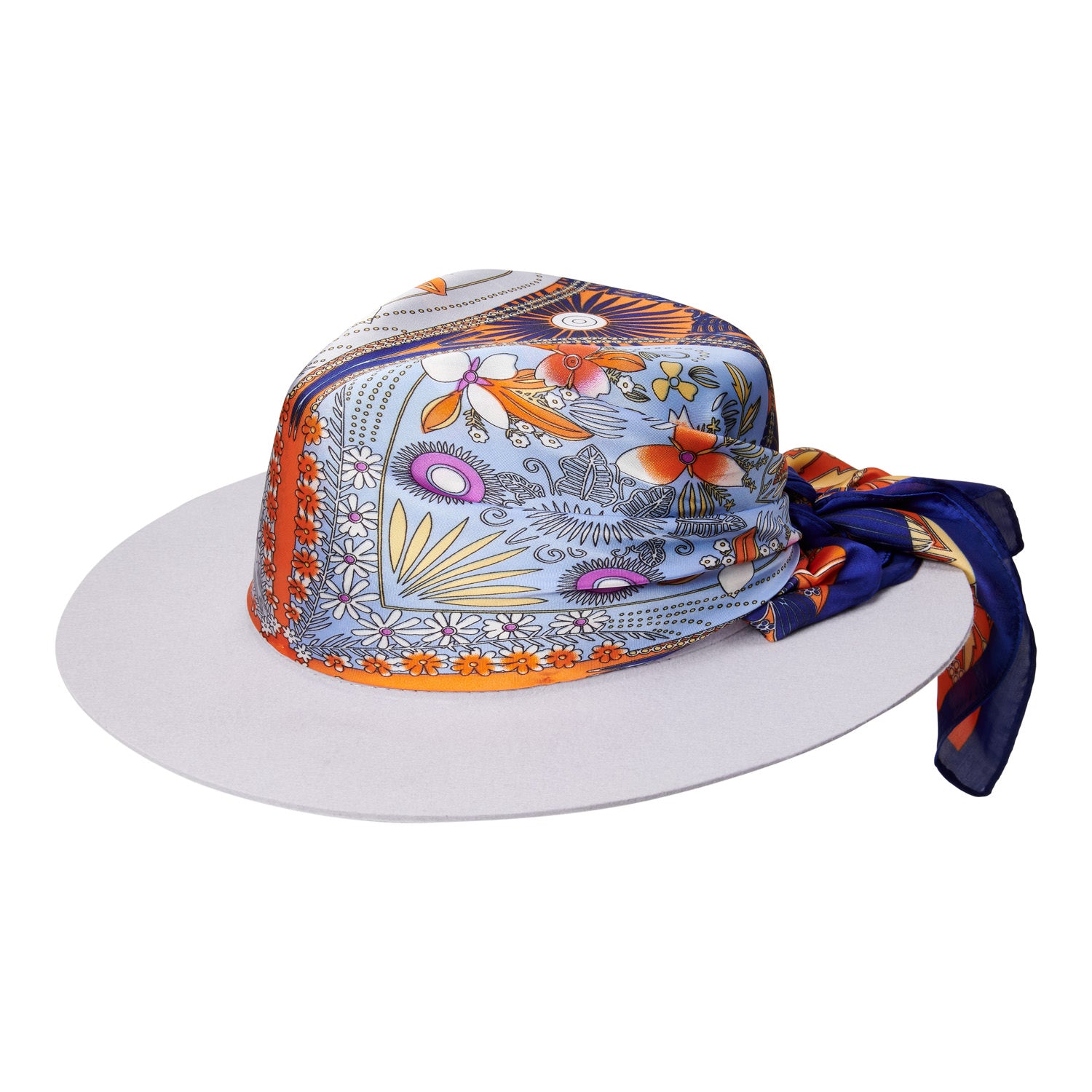 De Satin Tangerine fedora hoed is een unieke verschijning omdat het klassieke fedora model is afwerkt met een kleurrijke satijnen sjaal rond de bolling van de hoed. Een unieke en stijlvolle fedora hoed gemaakt van lichtgrijs wolvilt. Een must-have accessoire voor ieder seizoen die een elegante touch brengt aan jouw garderobe.